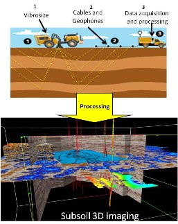 The geophysical surveying operations exploit the different elastic properties of the geological formations that constitute the ground in the reflection of the seismic waves generated by a source of energy placed on the surface. The waves travel deep into the geological strata; each geological discontinuity in the ground partially reflects the waves to the surface, depending on the different rocks’ elastic properties.